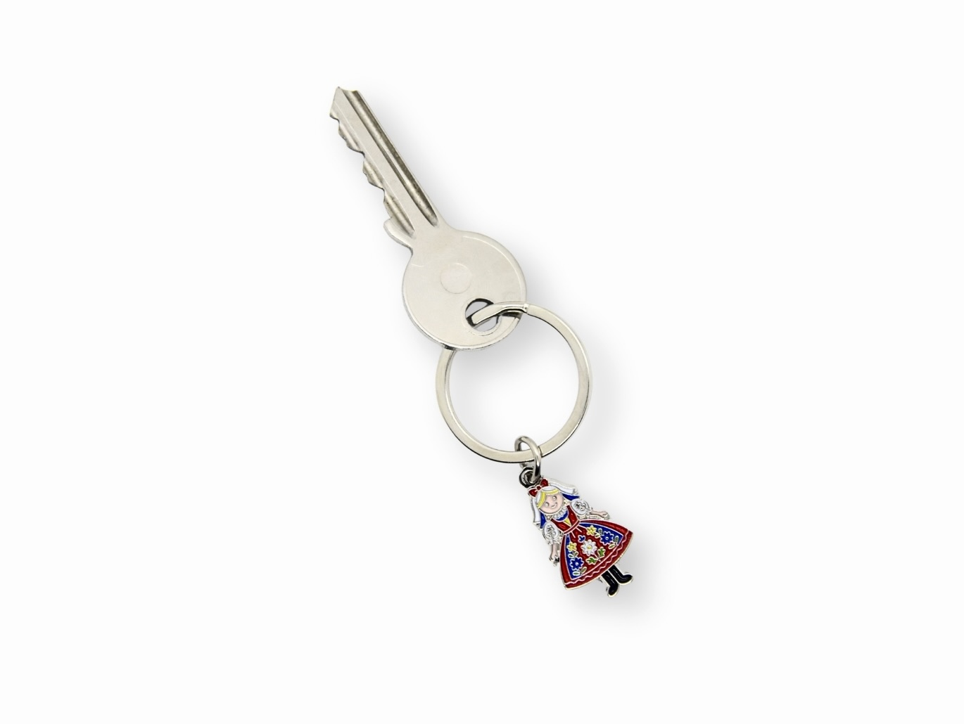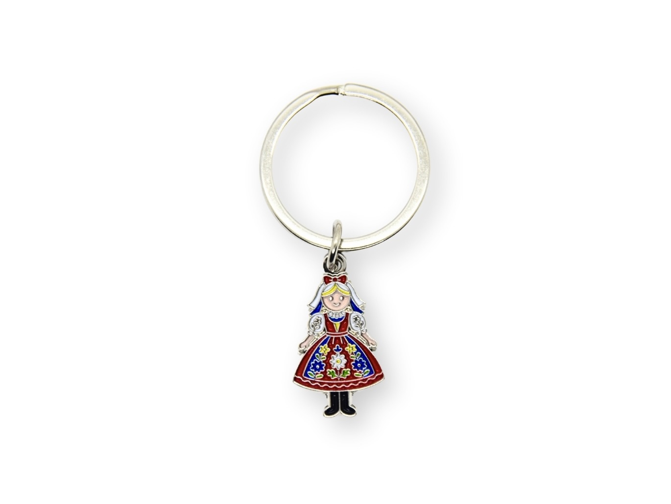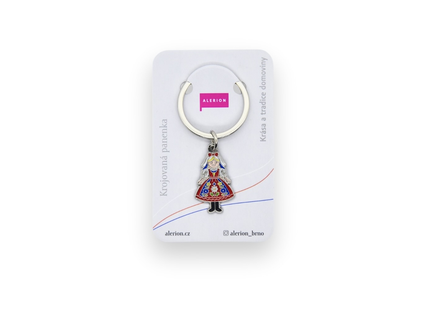Originální kovová klíčenka s motivem krojované panenky. Barevné detaily, kvalitní ražba a elegantní provedení inspirované českým a moravským folklorem.