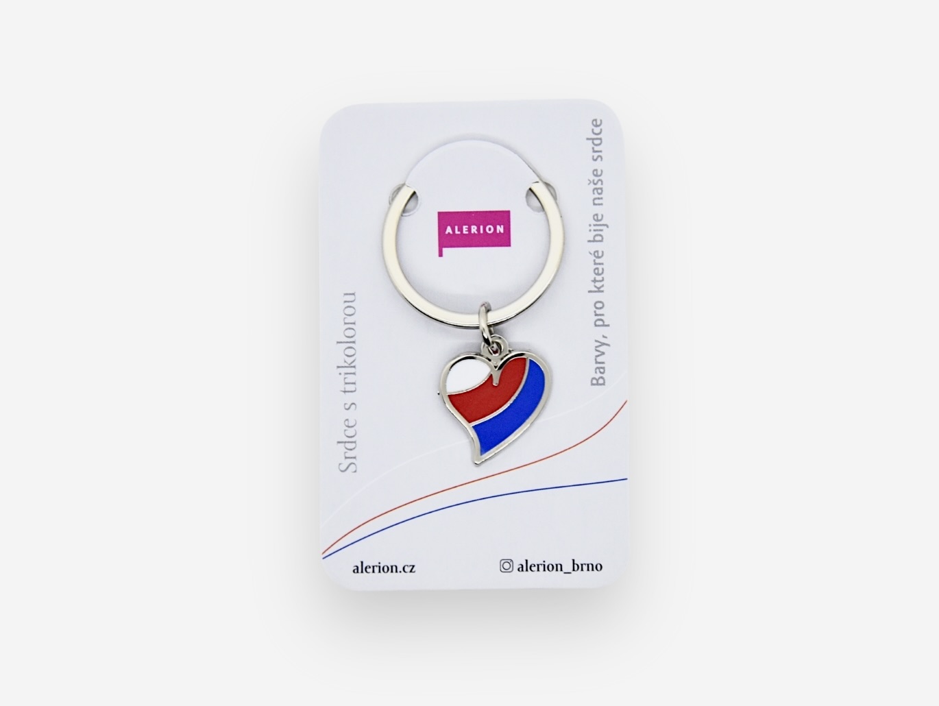 Originální klíčenka ve tvaru srdce s českou trikolórou. Elegantní, precizně zpracovaný doplněk s dlouhou životností, vhodný jako drobný dárek i každodenní talisman.