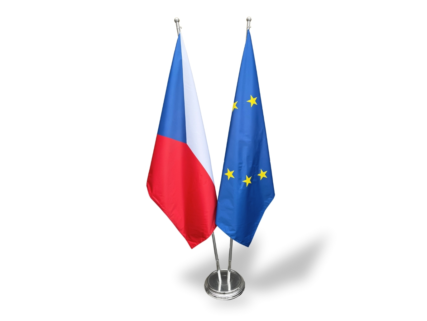 Komplet stojanu s průměrem 35 cm s interiérovými vlajkami ČR a EU