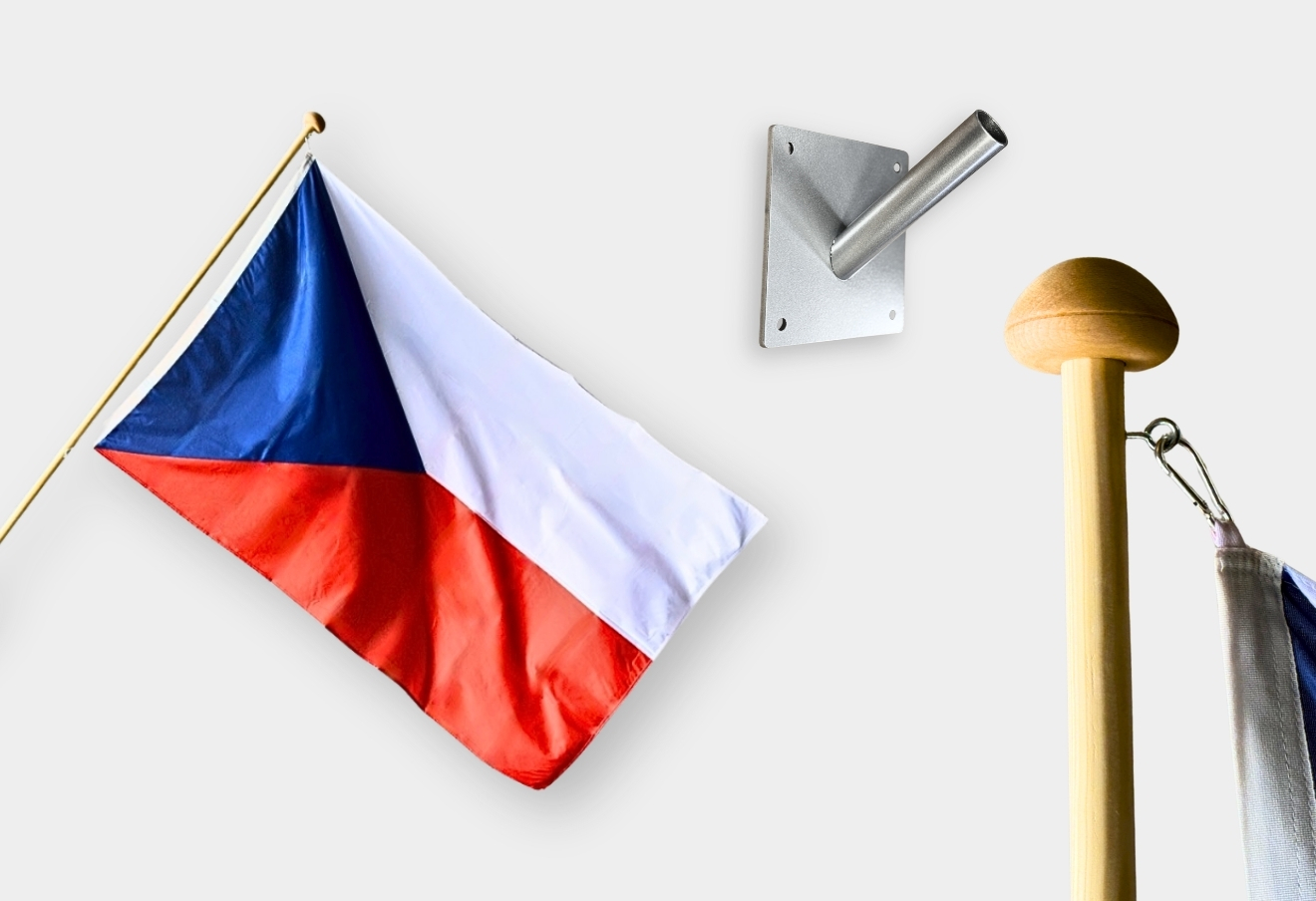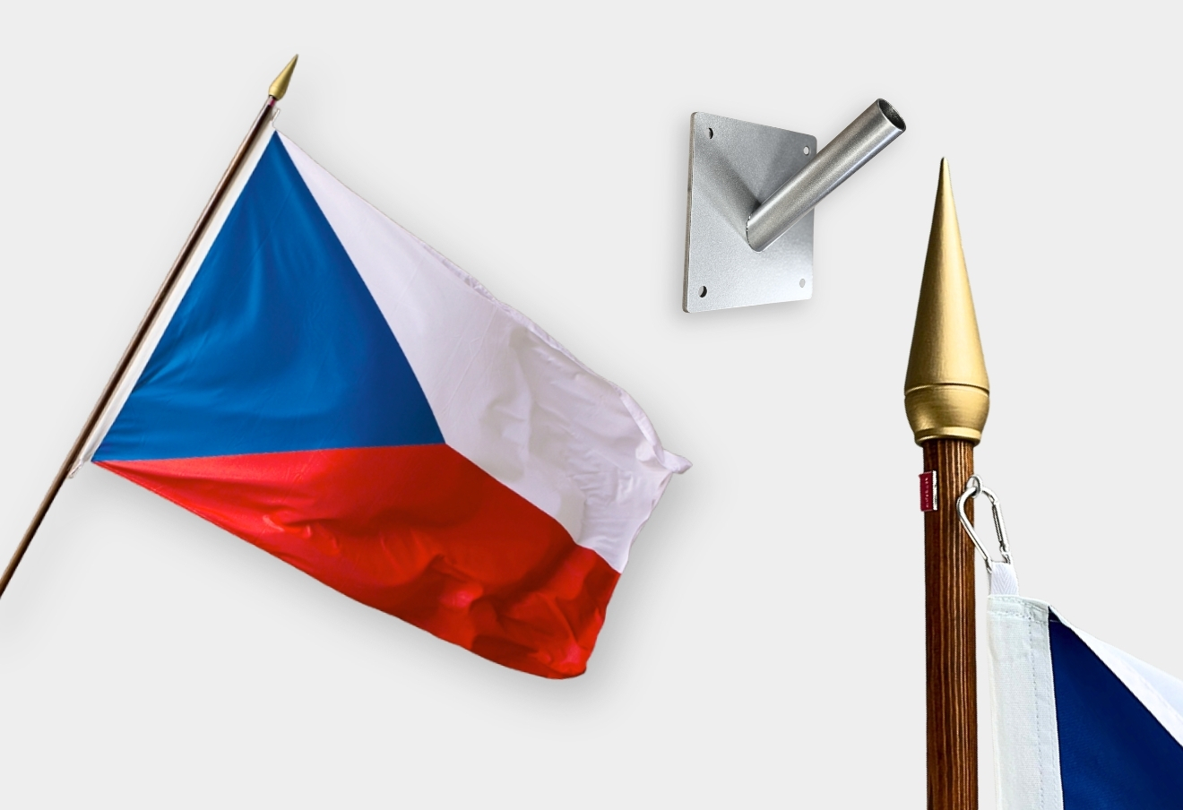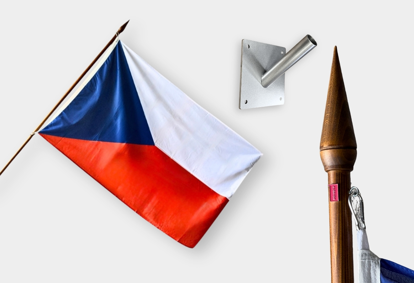 Komplet vlajky ČR s žerdí a lakovaným fasádním držákem „Hrdě na fasádě“