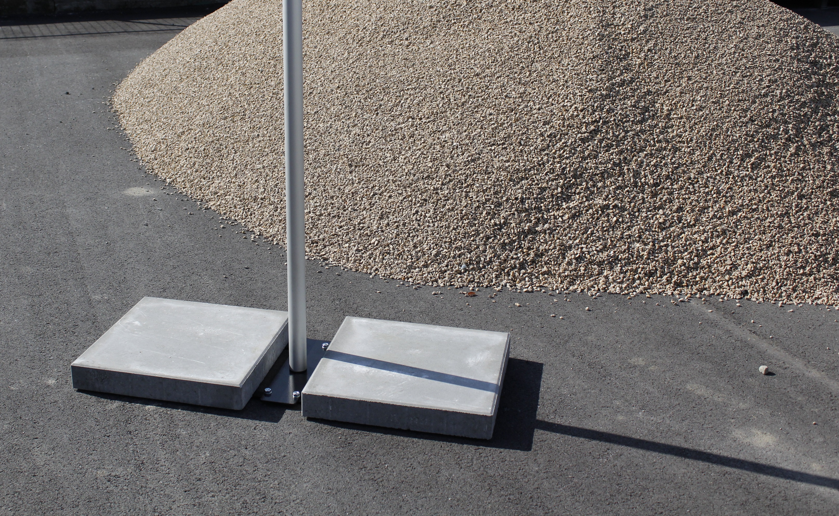Kovový podstavec k mobilnímu stožáru je vhodný pro venkovní i vnitřní vlajkovou prezentaci, jako zátěž slouží betonové dlaždice.